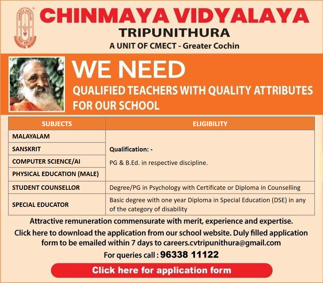 Chinmaya staff and students strive to honor, glorify and follow Pujya Swami Chinmayananda. Since our doors opened in 1994, we have motivated students to rigorously pursue academic excellence and to develop their God-given talents. We believe God created each child as His divine masterpiece, capable as learners and uniquely gifted for His purpose.